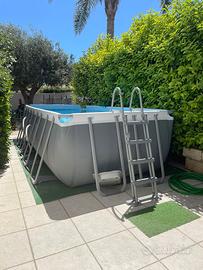 La piscina è una bestway 56671 dotata di filtro a sabbia e di dimensioni h122x488x244 cm