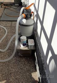 Vendo perché non più utilizzata, piscina fuori terra, in parte smontata. Con scaletta, doppio filtro (originale+a sabbia), aspirafondo. 4,88x2,44x1,22. In buone condizioni con normali segni di utilizzo. Dal 2021 al 2024 usata due mesi durante estate e ogni volta rimessata in garage. Non spedisco.