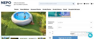 Piscine fuori terra gommone morbido diametro 5m profondita 1,1m con robotino sanza fili e tutti gli accessori : scala, teloni invernali, locale tecnico, pompa, filtro ecc. Prezzo nuovo : 7500€ solo.