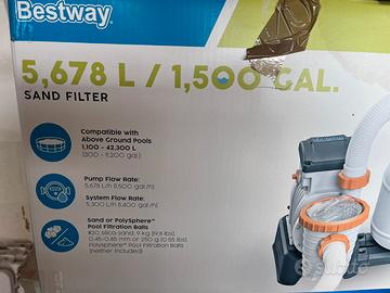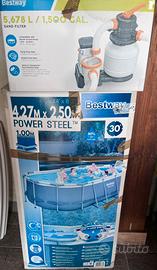 Piscina montabile usata un mese, smontata e pulita con tutti gli accessori ( scaletta per accedervi, retino , aspirapolvere …) e Filtro a sabbia professionale. Valore di €1000 circa totali