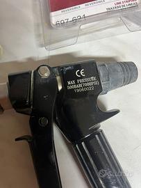 Vendo pistola airless professionale max 500 BAR / 7250 PSI, completa di: • Pistola alta pressione con attacco standard • Ugello Titan TR1 697-624 – 5000 PSI – Reversible • Secondo ugello/ricambio incluso (come da foto) • Perfetta per tracciatura linee, verniciature industriali, edilizia, manutenzioni Condizioni ottime, usata pochissimo. Tutto originale, nessuna modifica, nessun difetto.