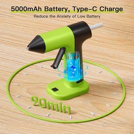 Pistola Colla a Caldo, Pistola Colla a Caldo Senza Fili con 5000 mah Batterie, 4V Mini Pistola Colla a Caldo Professionale con 35pcs 7mm Colla Stick, Riscaldamento Rapido, On/Off, Adatta per DIY20