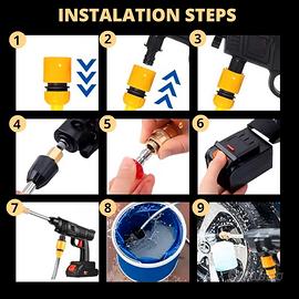 Pistola Idropulitrice a Batteria. Pulitore ad Alta Pressione 35Bar/500PSI e 1500mAh/300W con 2 Batterie da 48V.Pistola Portatile Idropulitrice con Accessori, per Auto, Terrazzi e Giardini.
