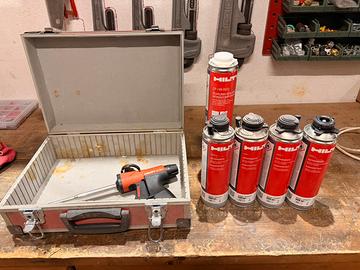 Vendo pistola per schiuma Hilti, con valigetta, 1 bomboletta di schiuma 3 bombolette di detergente e 1 di detergente aperta.