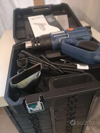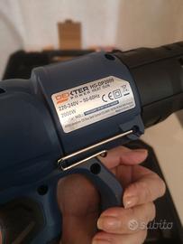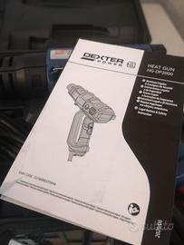 Pistola termica decapatore NUOVO mai utilizzato completo di scatola e valigetta del marchio Dexter Power- Pistola termica DEXTER HG-DP2000 2000 W- 3 livelli di temperatura e di flusso d'aria per una maggiore versabilita' di utilizzo posizione 1: 50°c; posizione 2 : 450°c ; posizione 3 : 600°C, impugnatura ergonomica, 4 bocchette accessori comprese. 2000W di potenza. Indicato per rimuovere vernici, riscaldamento piccole superfici fusione e saldatura, rimuovere adesivi, saldare, indurimento. Completo di manuale d'uso e istruzioni.