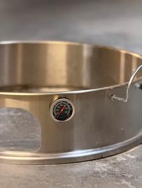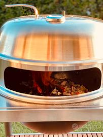 Anello di pizza in acciaio inox con un termometro incorporato per controllare la temperatura all'interno della griglia in qualsiasi momento.