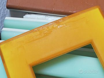 NOTA BENE: queste placche sono particolari, con parte esterna costituita da una pellicola gommosa che col tempo diventa leggermente appiccicosa. QUINDI non sono perfette.