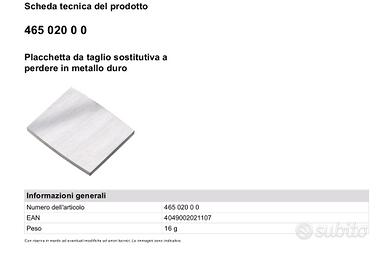 placchetta da taglio sostitutiva a perdere