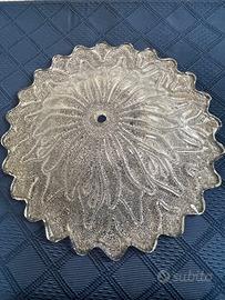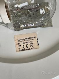Plafoniera fiore in vetro trasparente esterno e granulato interno- 2 luci -bottone centrale dorato. Misura:piatto a muro diametro cm.34 -vetro diametro cm.40 -profondità cm.14 Praticamente nuova.