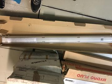 Plafoniera per neon 36W ad armatura stagna con corpo stampato in policarbonato grigio infrangibile ed autoestinguente V2, di elevata resistenza meccanica grazie alla struttura rinforzata da nervature interne.