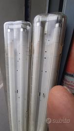 vendo n.2 plafoniere 2x58w usate ma funzionanti, complete di lampade,come si puo' vedere dalle foto una delle due e' un po' rotta in un angolo,pero' non influisce sul funzionamento