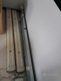 N. 4 PLAFONIERE STAGNE DISANO 2X58W e N. 5 ELEMENTI CANALINA Schneider Electric kba25ed4303 elemento diritto, 3 m lunghezza.