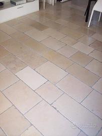 Pavimento in marmo di Trani formato a correre con finitura anticata, ideale per ambienti interni ed esterni.