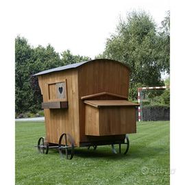Pollaio dotato di tutti i Comfort per gli animali. Dotato di Nido di deposizione, posatoi in legno, entrata con scaletta, fondo per la pulizia e le ruote.