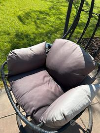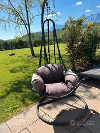 Poltrona a dondolo da sistemare, non per quanto riguarda la struttura “che è perfetta e molto solida” ma solo per l’estetica, il cuscino è integro ma scolorito dal sole (si potrebbe rivestire) e il rivestimento della struttura sedia di sta staccando (vedi foto). La poltrona nuova costerebbe circa 200 euro
