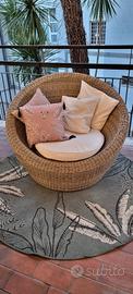 poltrona Maison du Monde tipo rattan in plastica completa di cuscini. super comoda! misura 120 diametro h 85. zona Roma nord
