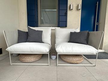 Vendo n. 2 poltrone da giardino Havsten IKEA color beige complete di n. 2 cuscino seduta e n. 2 cuscino schienale in ottime condizioni. Si possono usare singolarmente oppure unendole diventano un comodo divanetto. Preferibilmente con ritiro a mano o disponibile alla consegna nel raggio di 20 km. Eventuali spedizione a carico dell'acquirente.