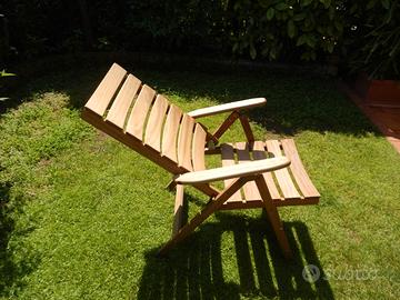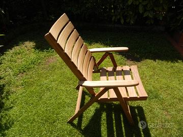Poltrona giardino legno (sedia esterno) pieghevole e reclinabile in 3 posizioni, come foto sostituito cerniere (rinforzate). Consegna a mano.