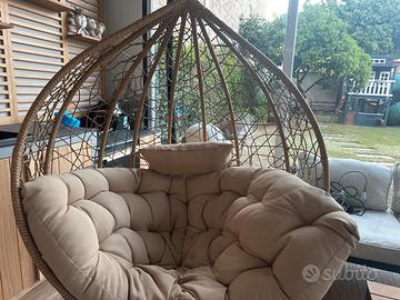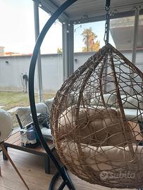 Vendo bellissima poltrona sospesa stile “cocoon” in rattan con struttura in metallo inclusa. Perfetta per interno (salotto, veranda) ma anche per esterno coperto. ✔ Design moderno ed elegante ✔ Cuscino imbottito molto comodo incluso ✔ Struttura stabile e resistente ✔ Colore neutro facilmente abbinabile ✔ Ottima per relax, lettura o angolo lounge La poltrona è in ottime condizioni, come da foto, senza difetti strutturali. 📍 Ideale per chi vuole creare un angolo relax chic e accogliente. Prezzo 100,00€