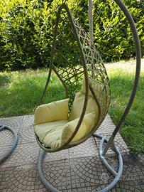 amaca poltrona appesa uovo dondolo di ottima qualità compresa di cuscini un po' sbiaditi ma sfoderabile e lavabili.