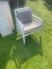 Poltroncina Nardi modello Aria in resina colore Bianco con cuscino in tessuto Acrilico colore Grigio. Unico pezzo