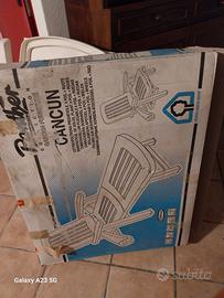 due brandine in PVC da giardino complete di copri cuscino. Una con imballo. Prezzo €30 cadauna