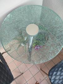 tavolino bar effetto vetro rotto circolare diametro 60 h 75 3 piedi cromati