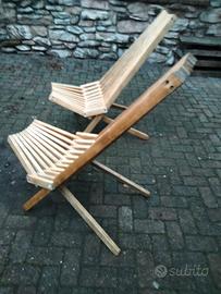 vendo due poltroncine prendisole ripiegabili.attualmente trattate solo con impregnante incolore e quindi modificabili nel colore semplicemente riverniciandole.