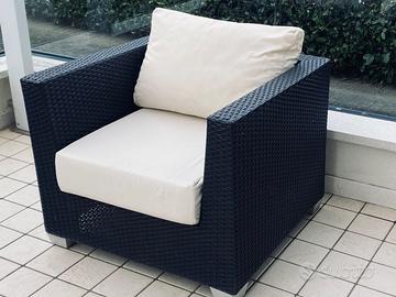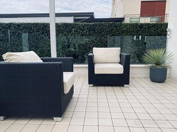 Vendo 2 poltrone da esterno eleganti e moderne, colore nero/antracite, complete di cuscini coordinati.