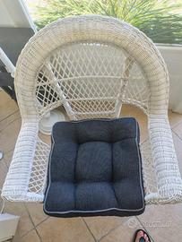 Vendesi 2 poltrone una in ferro battuto e una in rattan comprese di cuscino colore neri in perfette condizioni. Preferibilmente in coppia ma anche singolarmente