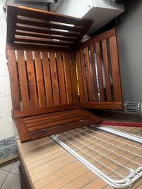 Vendo n.2 poltrone da giardino in legno completo di cuscini, seduta e schienale, fodere escluse