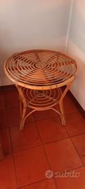 Coppia di poltroncine in vimini complete di cuscino e tavolino rotondo diametro cm 60 in vimini