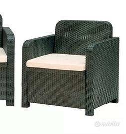 Vendo set di n.2 poltrone color antracite con cuscini brand GRAND SOLEIL Grandsoleil Boheme Sorrento set divani, verde polimerico, antracite.