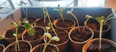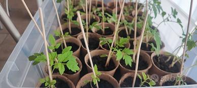 Piante di Pomodoro e Girasole per coltivazione indoor e balcone, è possibile comunque trapiantarli in piena terra in giardino direttamente con il proprio vaso biodegradabile.