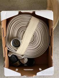 Pompa con zero secondi di lavoro sempre tenuta in efficienza in cantina pronta per un ipotetico allagamento La pompa in ghisa ha una spinta di 600 litri al minuto, per detriti con dimensioni fino a 6 mm e una prevalenza manometrica totale di 32 m. e corredata di tubo di aspirazione (tubo di tipo rigido telato indeformabile)per l'aspirazione di 5 metri e una manichetta antincendio di venti metri per lo scarico tutti i raccordi necessari sono già presenti, e compresi nel prezzo.