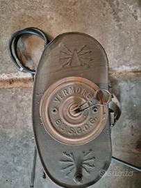 È munito di una pompa manuale azionata con leva, collegata a un tubo flessibile e una lancia metallica.