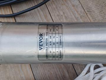 Vendo pompa sommersa praticamente nuova mai usata, solo provato il finanziamento ma mai installata, vendo per cambio tipo di pompa. Dotata di una valvola di ritegno incorporata, compresa di cavo elettrico di 20 Metri e corda per il sostegno. La pompa ha una potenza di 750W ( 1CV) 220V con attacco femmina da 1" 1/4 con altezza di 119.2 mm 46.9", diametro 7.6 mm 3". Più essere installata fino ad una profondità di Max 30 Metri.