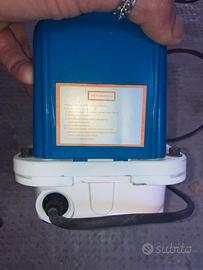 L'immagine mostra la pompa ad aria HiBlow XP-80. Si tratta di una pompa a membrana lineare compatta, leggera ed efficiente dal punto di vista energetico, spesso utilizzata per acquari, laghetti o sistemi settici.