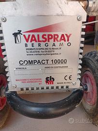 Vendo pompa Valspry compact 10000 per inutilizzo - pistola airless manuale 11/16 - lunghezza tubo 10m - asta per prolunga pistola - 3 ugelli autopulenti - filtri cartucce di ricambio - sistema aspirazione dispersione con tubo pescante diametro 25 - compensatore di colpi con manometro 0-400 bar - portata 12lt/Min - pressione max di utilizzo 250 bar - misura ugello max 0.037' - potenza 1,8 kW - alimentazione 230 V - peso 35 kg