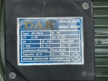 Pompa autodescante modello jet 100 m 1 CV corpo in ghisa Revisionata : sostituzione cuscinetti , tenuta , guarnizioni