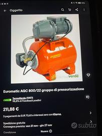 Salve come da annuncio vendo x inutilizzo pompa autoclave Euromatic Agc 800/22