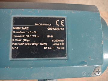 Vendo pompa centrifuga CALPEDA NMM 2/AE MONOFASE usata molto poco per irrigare orto familiare di piccole dimensioni. Regalo guarnizioni tenuta dell'albero di ricambio originali CALPEDA. Prezzo poco trattabile. Spese di spedizione a carico dell'acquirente da quantificare in base alla destinazione.