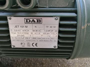 Vendo elettropompa autoadescante DAB JET, mai utilizzata. 1.5HP (1.1 kW). Per acqua pulita.