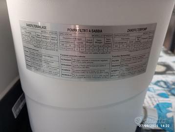 Per cambio piscina più grande, vendo pompa a filtro sabbia , usato 3 mesi