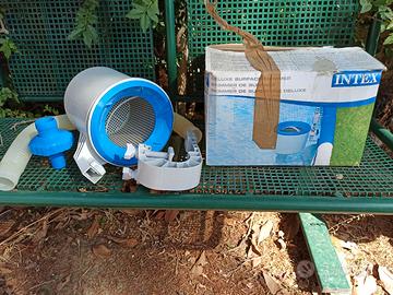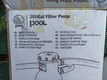 Pompa filtro esterna con un paio di filtri di ricambio, skimmer, retino, e un tubo di collegamento; poco usato, in buone condizioni. Solo ritiro a Riano, Roma