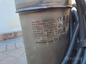 Grundfos UNILIFT AP 50B.50.11.A1.V Pompa sommergibile in acciaio inox per drenaggio acque reflue kw 1.75, con galleggiante, portata max 28 m³/h - prevalenza max 14 m. nuova mai utilizzata ritiro a mano zona cassia olgiata o spedizione. pagata euro 600 e mai utilizzata