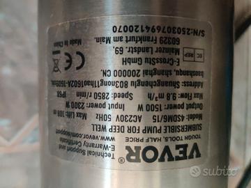 vendo pompa ad immersione per pozzo prodotto nuovo la pompa ha una prevalenza di 108 mt. per la conseegna e gradito il ritiro di persona o commissionare un corriere per altre informazioni non esitare a contattarmi al 3476747733