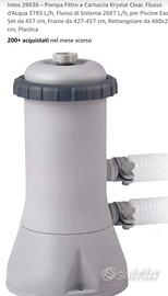 Pompa Filtro a Cartuccia Krystal Clear, Flusso d'Acqua 3785 L/h, Flusso di Sistema 2687 L/h, per Piscine Easy Set da 457 cm, Frame da 427-457 cm, Rettangolare da 488x244 cm, Plastica + 7 filtri tipo a