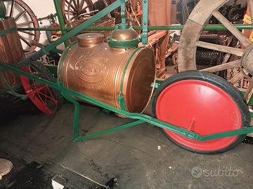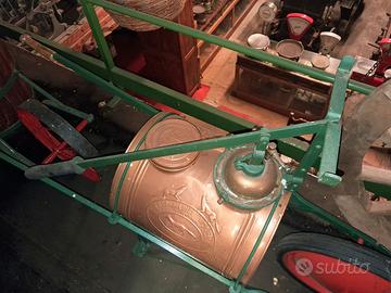 Pompa irroratrice a carriola per solfato di rame o verderame. Realizzata dalla ditta Eredi di Luigi Volpi. Il design è tipico degli attrezzi agricoli manuali storici. pompòn a cariole