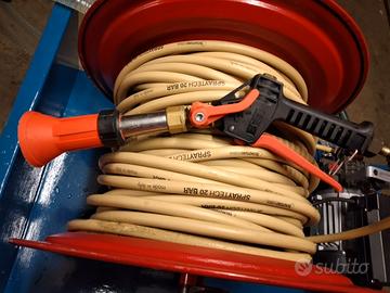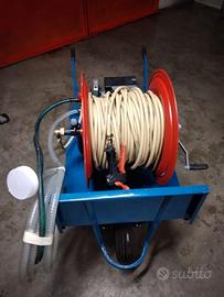 Pompa irroratrice elettrica su carriola. Motore Ravel: 1.2 HP - Voltaggio 220. Pompa Annovi e Reverberi: Mod. AR 2 - pressione 20 bar - Portata 13 lt./minuto. N. 50 metri di tubo su apposito avvolgitore - Pistola professionale marca Viton. Il tutto montato su apposita "carriola". Solo pompa e motore euro 250. Prezzo non trattabile.